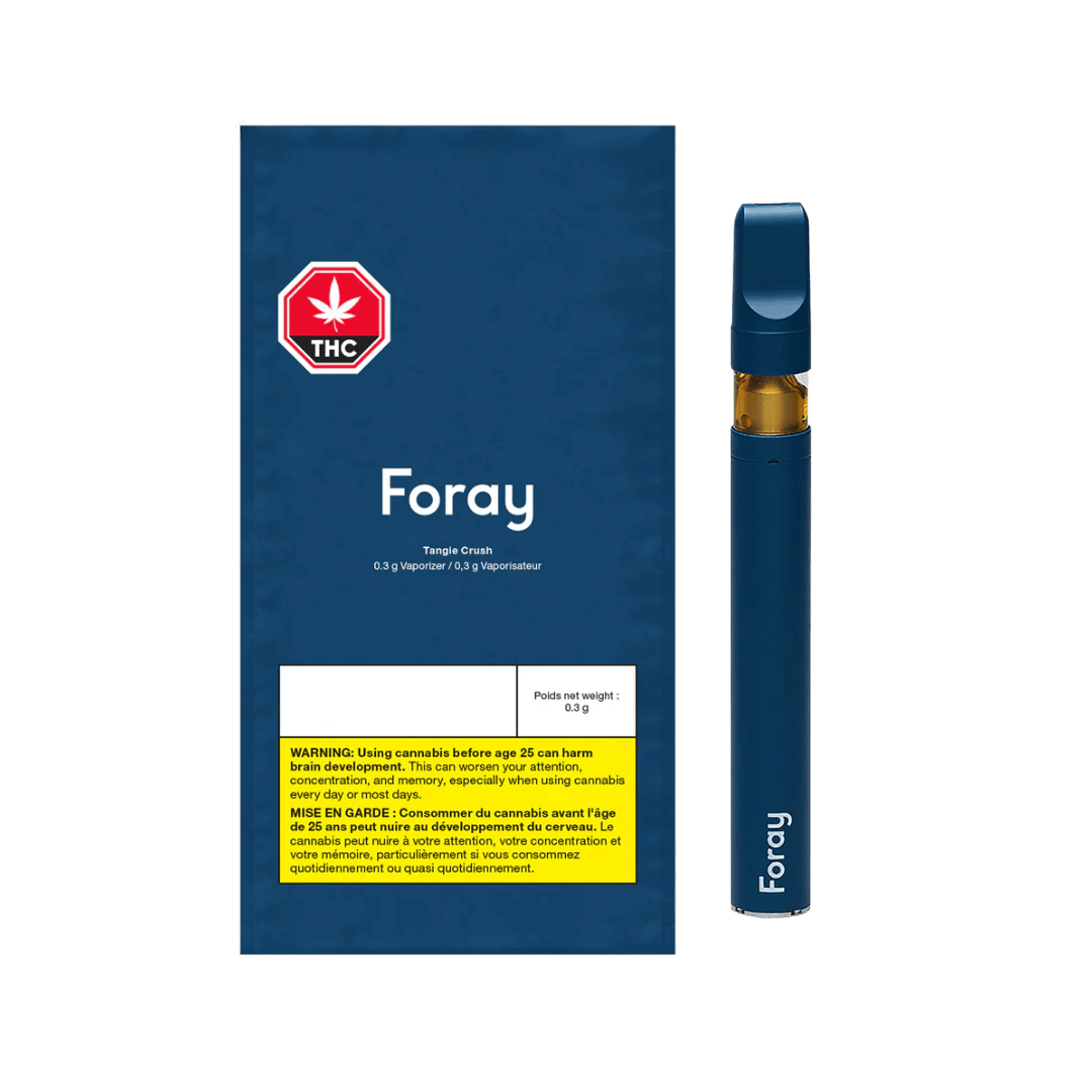 Foray’s Tangie Crush is a sativa-dominant formulation with an approachable potency bursting with sharp orange and sweet tangerine, followed by a smooth, earthy cannabis finish. Bold, juicy, and tangy—this is citrus with a little crush. Crafted with premium distillate and a blend of flavouring agents housed in a sleek, rechargeable 0.3g pen.