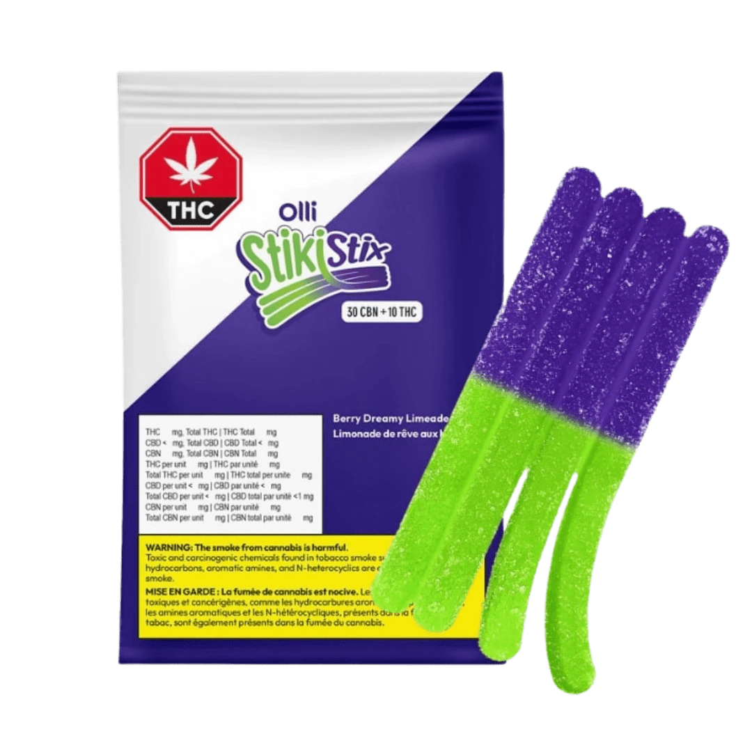 Packed with 30mg of CBN and 10mg of THC, and with a juicy fusion of Blackberry Limeade, Olli StikiStix feature a chewy texture and a unique shape allowing you to split them into four strips.