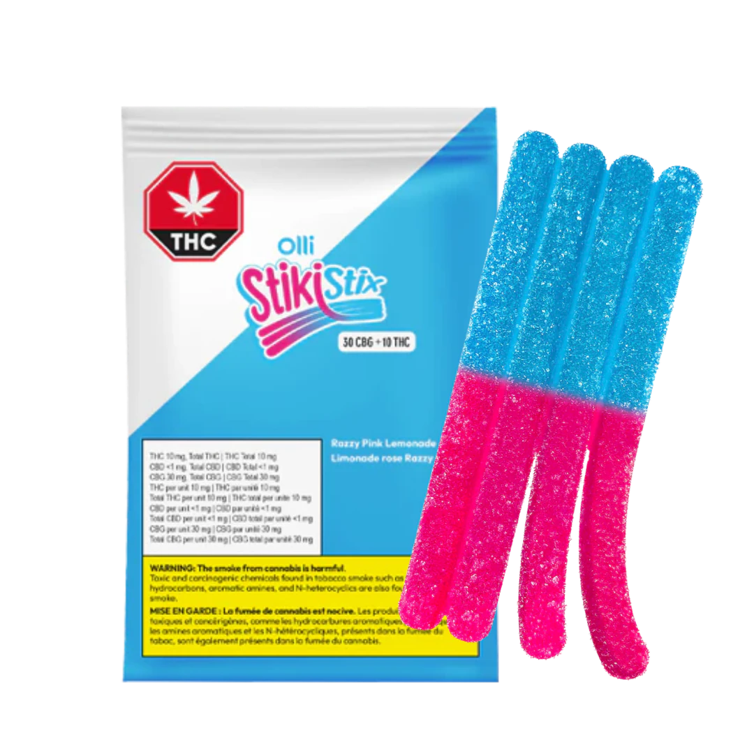 Packed with 30mg of CBG and 10mg of THC, and with a juicy fusion of blue raspberry and pink lemonade, these Olli StikiStix feature a chewy texture and a unique shape allowing you to split them into four strips.