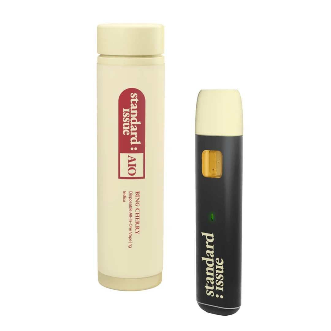Wild. Tart. Classic Cherry. Bing Cherry brings sweet fruit, hints of floral and that essential tangy finish. Ripe for the picking in a portable, discreet and all-around dependable all-in-one vape. Cannabis ready to consume — whenever you need it. That's Standard Issue. Stripped of excess, honed to essentials, and designed to keep pace — not for show, but for real life. Consistent, dependable, and ready when you are. Standard Issue: everything you need, nothing you don't. Triple-distilled distillate for purity. Botanical terpenes for taste. No gimmicks - just smooth pulls and big flavour. Welcome to the new standard.