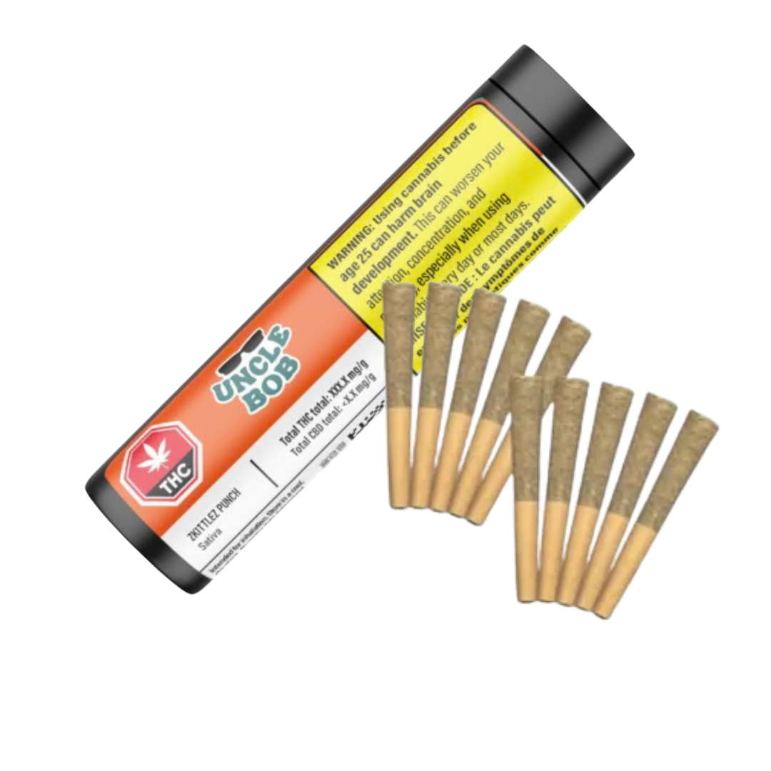 Zkittlez Punch Sativa by Uncle Bob is prepared with steady attention from harvest through rolling. Each 0.5g pre roll in this 10-pack is made from BC grown flower and crafted for a consistent and dependable burn. This cultivar is handled with care to maintain its natural qualities, including its recognizable aromatic profile. The pre-rolls are sized for convenience and produced with the same practical approach Uncle Bob brings to every batch. It is a straightforward option for those who appreciate well made, reliable pre-rolls.