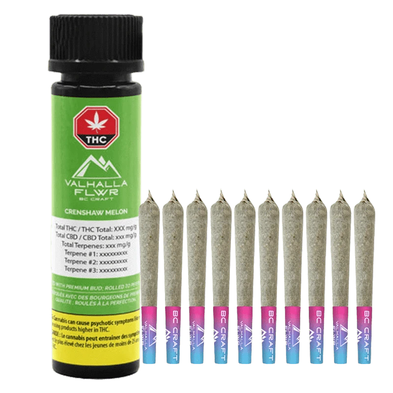 Experience premium quality with Crenshaw Melon Pre-Rolls, made from 100% non-irritated whole milled flower—no shake, no trim, just pure buds. Crafted from hang-dried, hand-trimmed flowers and cured for 3 weeks, each pre-roll showcases the best of their in-house genetic blend, Chauffeur x Watermelon x Biker Kush. Indulge in honeydew, cantaloupe, and pineapple flavours with floral undertones. Each pack includes an Integra Boost, and every pre-roll is hand-verified for a flawless burn.